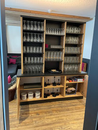 Für das einfache Servieren und Anrichten der Gerichte besteht die Möglichkeit den Barbereich zu einem praktischen Buffet umzufunktionieren. So steht einem geselligen Frühstücks- oder Abendbuffet für Eure Gruppe nichts mehr im Wege.